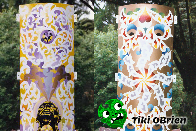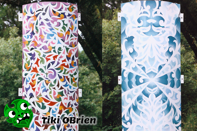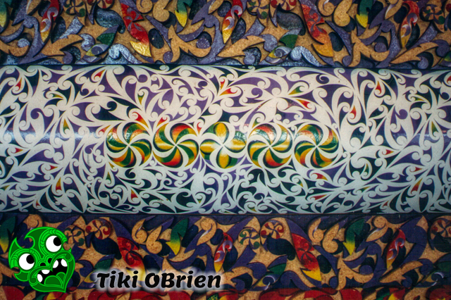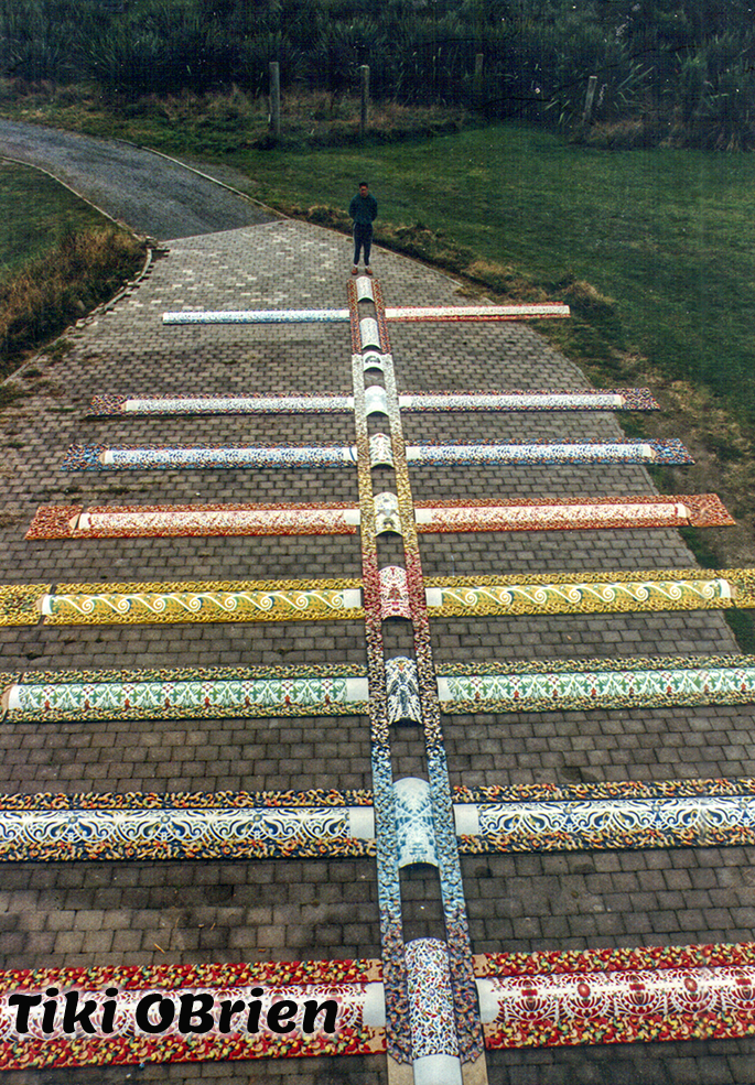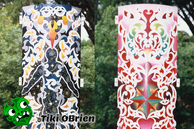 Samples of heke panels with kowhiawhai designs. Designed and painted 1985 - 1995