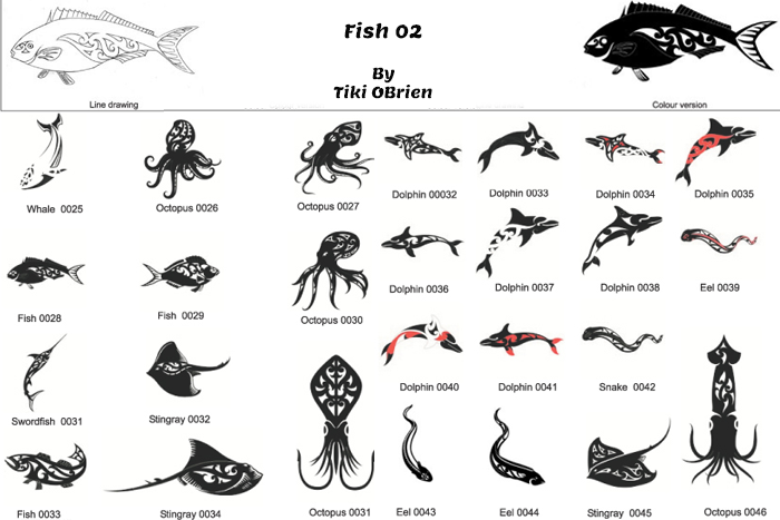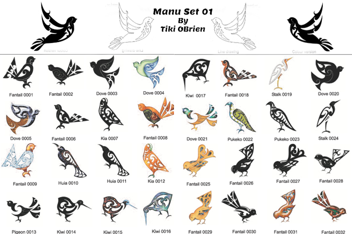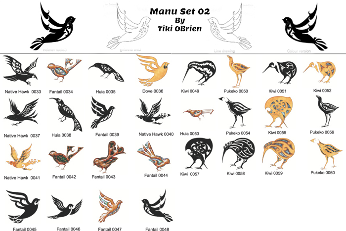 Māori graphic art showcasing the many variaties of designs using contemporary and traditional Māori design styles to create Māori styled animals, birds, fish, insects and more.